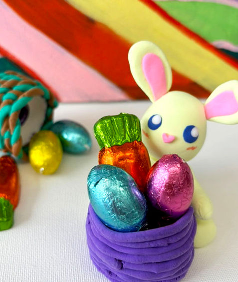 Kids will enjoy making a cute bunny in this Easter clay workshop. They’ll learn how to shape and form a bunny, “weave” a basket, and add Spring-inspired decoration!